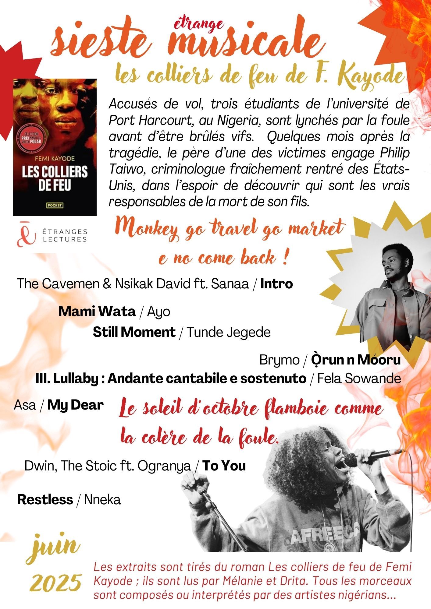Juin 2025 : Etrange sieste musicale "Les colliers de feu"